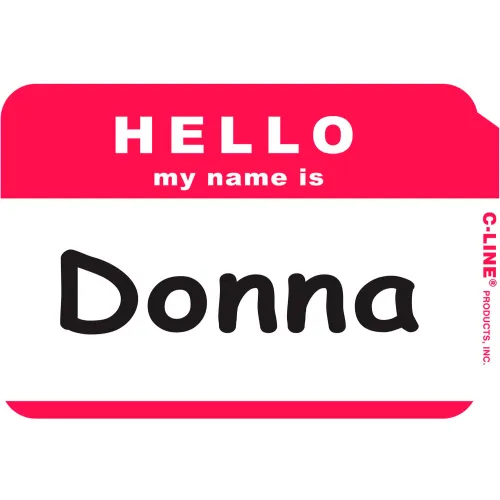 C-Line Products Pressure Sensitive Badges, HELLO my name is, Red, 3-1/2" x 2-1/4" 100/BX, 10 BX/Set