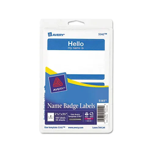 Avery® "Hello, my name is" Name Badge Labels, 2-11/32" x 3-3/8", Blue, 100 Labels/Pack