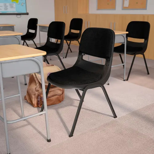 Flash Furniture Ergonomic Shell Stack Chair - Plastic - Padded Seat & Back - Black - Hercules Series - Pkg Qty 4