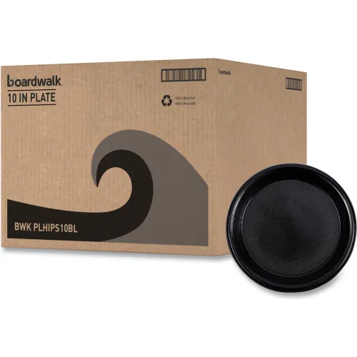 Boardwalk® Hi-Impact Plastic Dinnerware, Plate, 10" Dia., Black, Pack of 500
