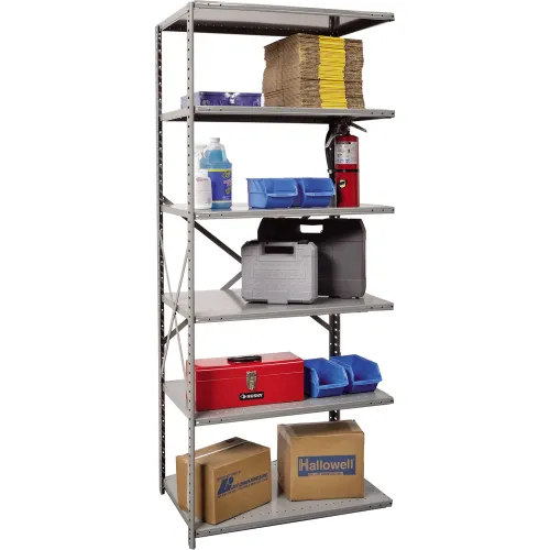 Hallowell Hi-Tech Open Style Metal Shelving, 6 Shelves, 500 lb. Cap., 36"W x 12"D x 87"H, Dark Gray