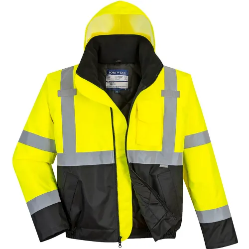 Portwest® Hi-Vis Contrast Bomber Jacket, ANSI Type R Class 3, Tall Cut, 2XL, Yellow/Black