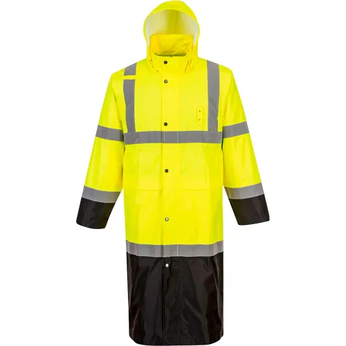 Portwest® Hi-Vis Contrast Panel 48" Rain Coat, ANSI Class 3, 5XL, Yellow/Black