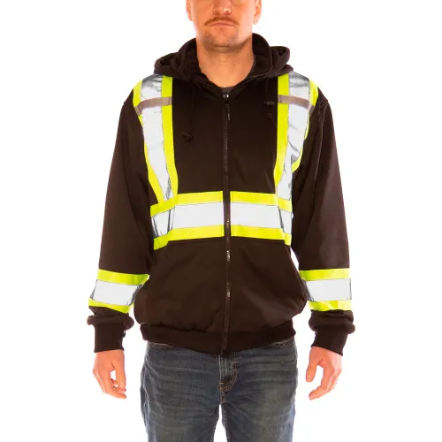 Tingley® Hi-Vis Hooded Sweatshirt, Type O, ANSI Class 2, L, Black/Fluorescent Yellow