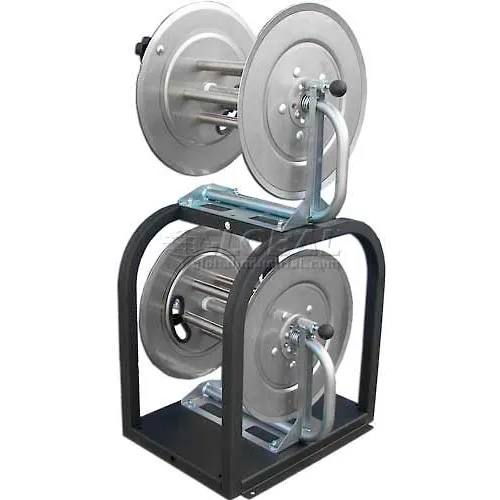 HOT-2-GO AR326 3/8"X250' Capacity 5000PSI 2 Reel Stackable Stainless Steel Pressure Washer Hose Reel