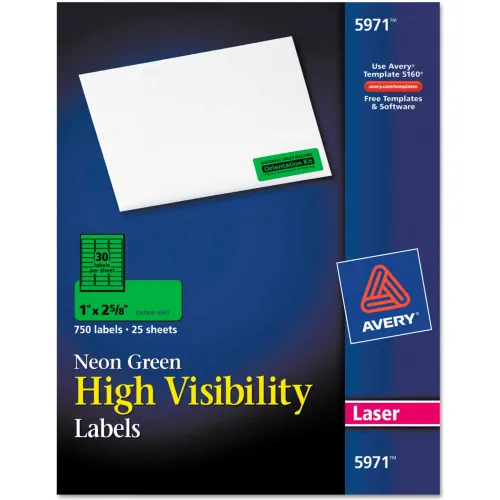 Avery® High-Visibility Laser Labels, 1 x 2-5/8, Neon Green, 750/Pack