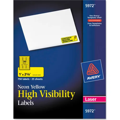 Avery® High-Visibility Laser Labels, 1 x 2-5/8, Neon Yellow, 750/Pack