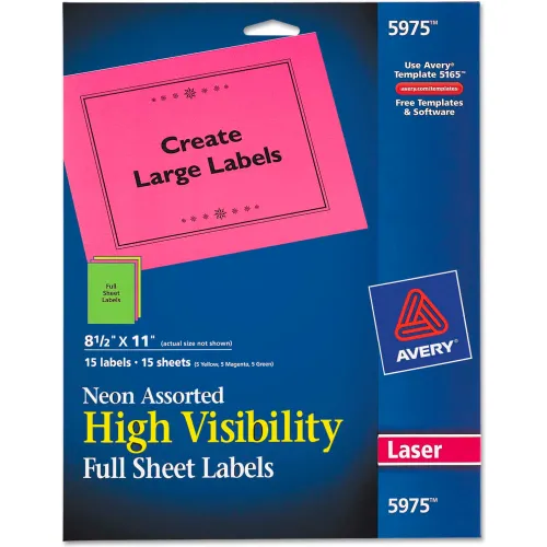 Avery® High-Visibility Laser Labels, 8-1/2 x 11, Assorted Neons, 15/Pack