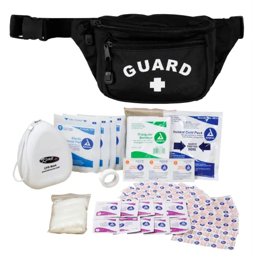 Kemp USA Hip Pack w/ Guard Logo & First Aid Supply Pack, Black, 49 Pieces