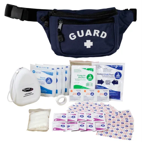 Kemp USA Hip Pack w/ Guard Logo & First Aid Supply Pack, Navy, 49 Pieces
