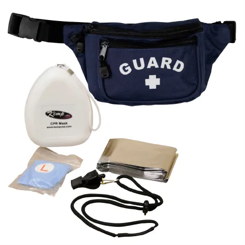 Kemp USA Hip Pack w/ Guard Logo & Lifeguard Essentials Supply Pack, Navy, 5 Pieces