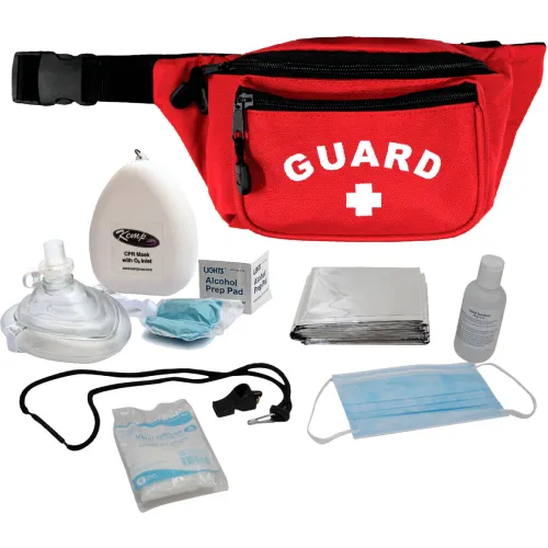 Kemp USA Hip Pack w/ Guard Logo & PPE Supply Pack, Red, 7 Pieces