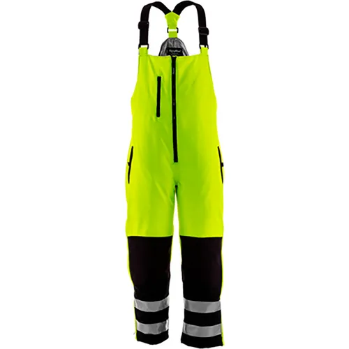 RefrigiWear HiVis Insulated Softshell High Bib, Black/Lime, -10°F Comfort Rating, 3XL