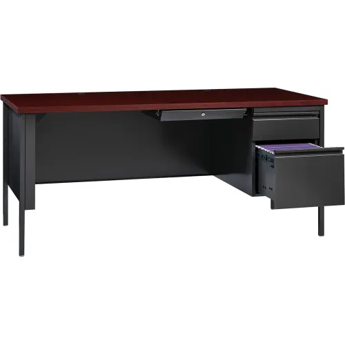 Hirsh Industries® Steel Desk - Single Right Pedestal - 30"D x 66"W - Mahogany - HL10000 Series