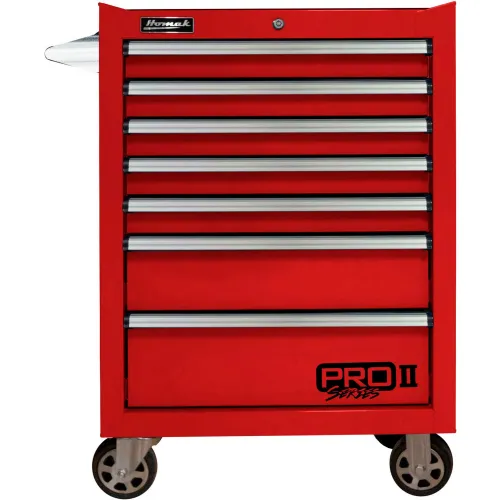 Homak RD04027702 Pro II Series 27"W X 24-1/2"D X 39"H 7 Drawer Red Roller Tool Cabinet