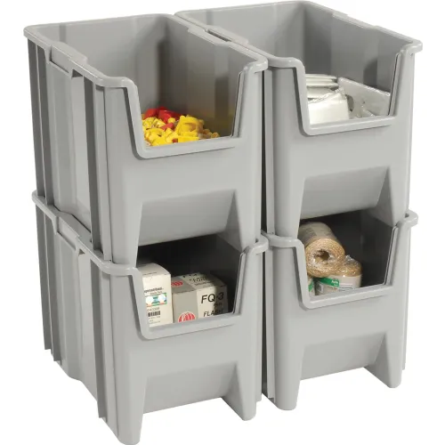 Quantum Storage® Plastic Giant Hopper Bin, 17-1/2"L x 10-7/8"W x 12-1/2"H, Gray - Pkg Qty 4