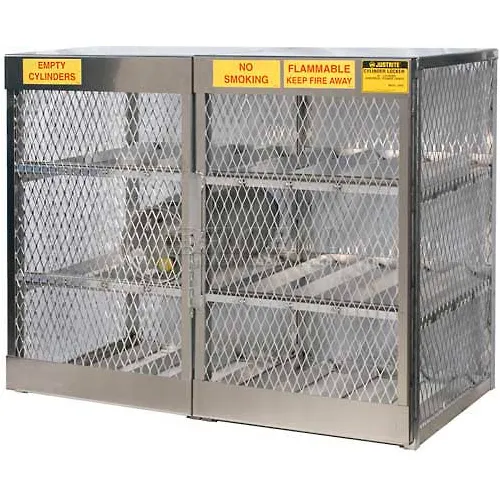 Justrite Horizontal, 12 Cylinder, Aluminum Storage Cabinet, 60"W x 32"D x 49-1/2"H, Manual Close