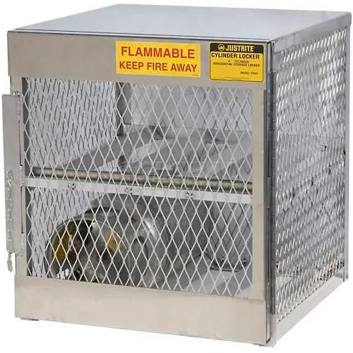 Justrite Horizontal, 4 Cylinder, Aluminum Storage Cabinet, 30"W x 32"D x 33-1/2"H, Manual Close