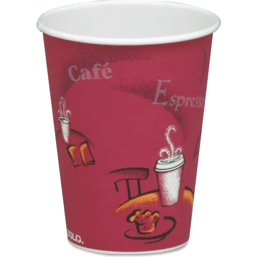 SOLO® Hot Drink Cups, Polylined Paper, 8 oz., Bistro Design, Maroon, 1000 ct