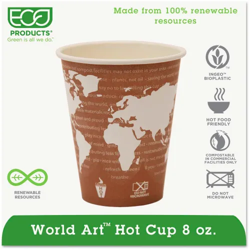 Eco-Products® World Art Renewable Resource Hot Drink Cups, 8 oz, Plum, 50/Pack, 20 Packs/Carton