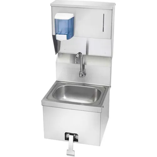 Krowne® HS-16 16" Wide Hand Sink With Soap And Towel Dispenser, Knee Pedal