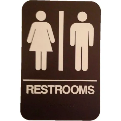 Don Jo HS 9060 03 - Restrooms ADA Sign, 6" x 9", Brown With Raised White Lettering - Pkg Qty 10