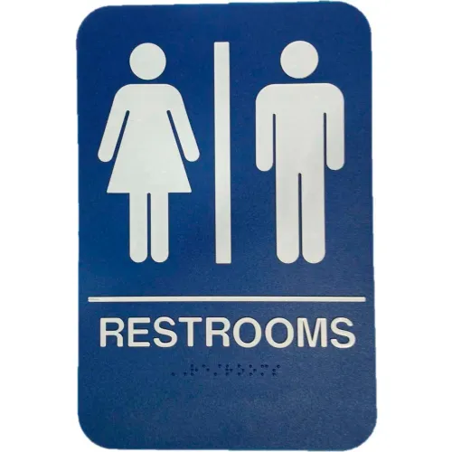 Don Jo HS 9070 03 - Restrooms ADA Sign, 6" x 9", Blue With Raised White Lettering - Pkg Qty 10
