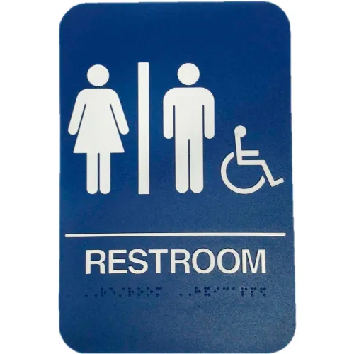 Don Jo HS 9070 32 - Women's/Men's/Handicap ADA Sign, 6" x 9", Blue With Raised White Lettering - Pkg Qty 10