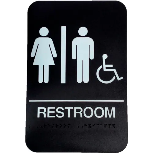 Don Jo HS 9090 32 - Women's/Men's/Handicap ADA Sign, 6" x 9", Black With Raised White Lettering - Pkg Qty 10
