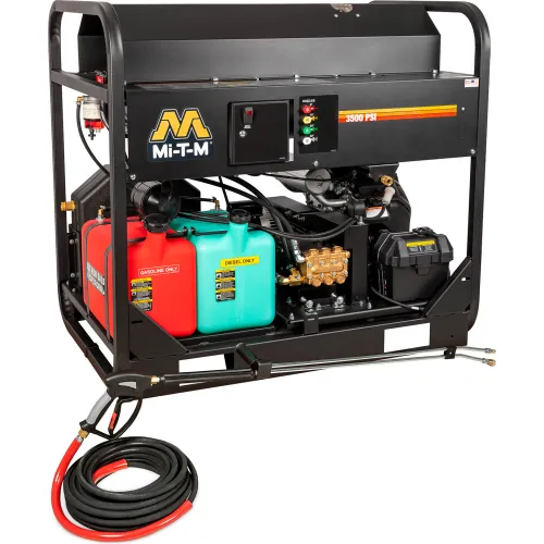 Mi-T-M® HS Stationary Gasoline Hot Water Pressure Washer, GX630 Honda, 3500 PSI, 5.6 GPM