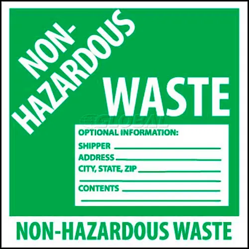 NMC HW5ALV Container Label, Non-Hazardous Waste, 6" X 6", White/Green
