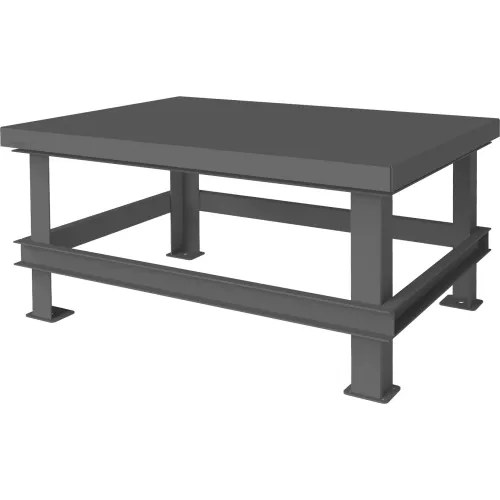 Durham Mfg. Stationary Machine Table W/ Shelf, Steel Square Edge, 48"W x 36"D x 24"H, Gray