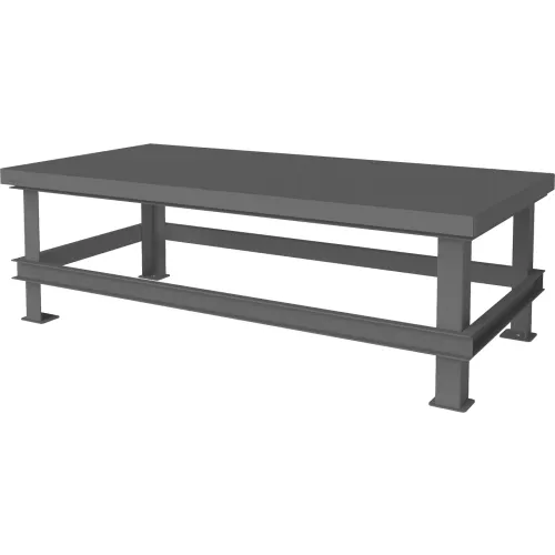 Durham Mfg. Stationary Machine Table W/ Shelf, Steel Square Edge, 72"W x 36"D, Gray