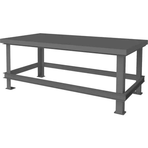 Durham Mfg. Stationary Machine Table W/ Shelf, Steel Square Edge, 72"W x 36"D x 30"H, Gray