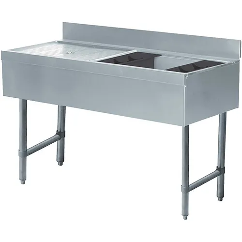 Ice Bin/Cocktail Station, 48X21X8 w/Cold Plate, L Drnbrd, 75Lbs Ice Cap