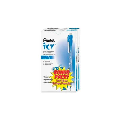 Pentel® Icy Automatic Pencil, Pocket Clip, Refillable, 0.7mm, Blue, 24/Pack