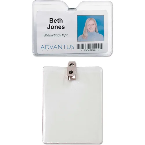 Advantus® ID Badge Holder w/Clip, Horizontal, 4" x 3", Clear, 50/Pack