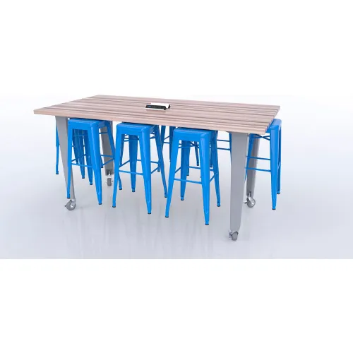 CEF IDEA Island 8 Seater Classroom Table, 84"L x 48"W x 42"H, Walnut Top, Royal Blue Legs