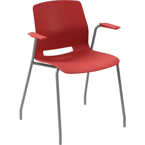 KFI Studios Imme Stacking Chair with Fixed Arms, Polypropylene, Coral Seat/Silver Frame