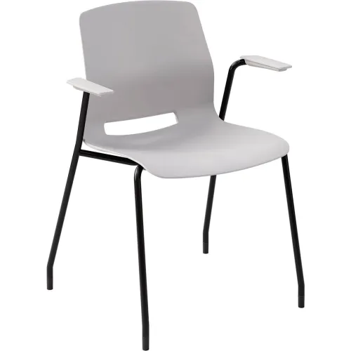 KFI Studios Imme Stacking Chair with Fixed Arms, Polypropylene, Light Gray Seat/Black Frame