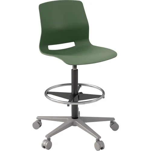 KFI Studios Imme Stacking Drafting Stool with Casters, Polypropylene, Slate Green Seat/Silver Frame