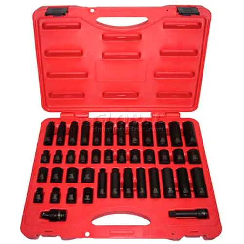 Impact Socket Set, 3/8" Drive, 6 Point, Short & Deep, 42 Piece