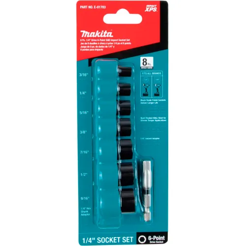 Makita® Impact XPS Impact Socket Set w/ Std Socket Adapter, 8 Pc, 1/4" Drive, 6pt, SAE