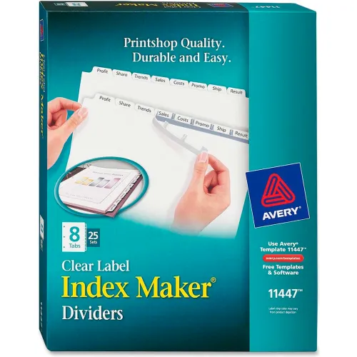 Avery Index Maker Clear Label Divider, Punched, 8.5"x11", 8 Tabs, 25 Sets, White/White