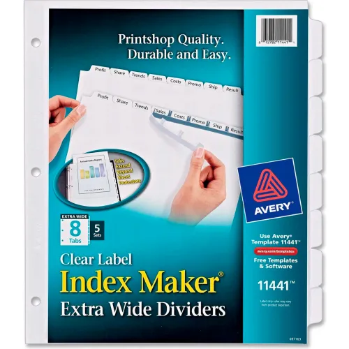 Avery Index Maker Extra-Wide Tab Divider, Blank, 9.25"x11.25", 8 Tabs, 5 Sets, White/White