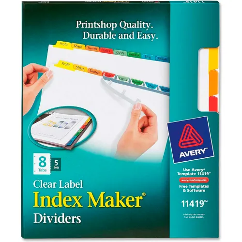 Avery Index Maker Punched Clear Label Tab Divider, Blank, 8.5"x11", 8 Tabs, 5 Sets, White/Multicolor