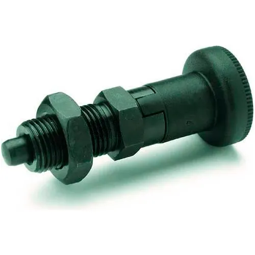 J.W. Winco Indexing Plunger Standard Lock-Out & Nut Black 19x45N Pressure M20x1.5 Thread 10x10mm Pin
