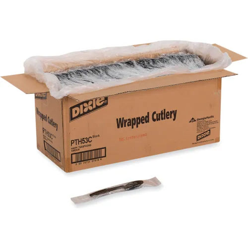 Dixie® Individually Wrapped Heavyweight Teaspoons, Polypropylene, Black, Pack of 1000