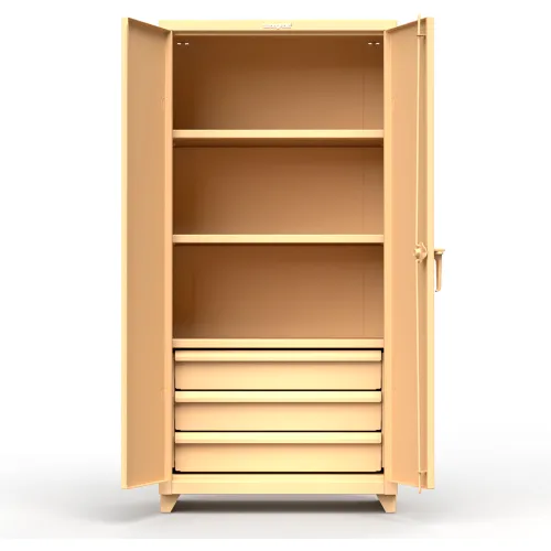 Stronghold Heavy Duty Industrial Storage Cabinet with 3 Drawers, 14 Gauge, 36"W x 24"D x 75"H, Beige