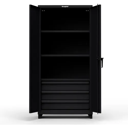Stronghold Heavy Duty Industrial Storage Cabinet with 3 Drawers, 14 Gauge, 36"W x 24"D x 75"H, Black